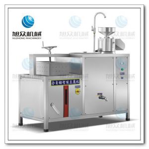 旭眾智能豆腐機專業生產數種豆漿制品,穩定高效,采用磨漿分離機和煮漿機,出品率高于其它設備,擁有自動控制系統,還增加數碼溫度控制儀,對煮漿隨時進行監控,同時對不同產品所需溫度自行設定,當煮漿達到設定溫度時,具有自動提示及報警功能;整機采用不銹鋼材質制作,質量卓越,占地面積小,安裝簡單,工藝先進,一臺設備只需一人操作,省時、省力、省工。