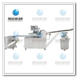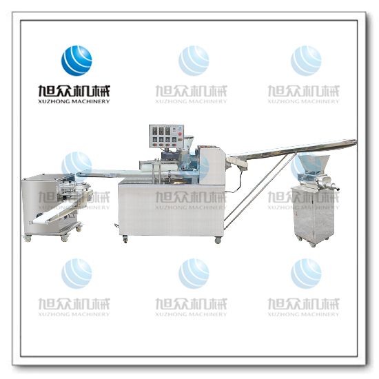 旭眾牌SZ-09A多功能單段酥餅機是經面輪將面皮壓成合適厚度,由自動出餡機將餡料充填至面皮上,經卷面輪將面皮卷成圓柱狀,后以成型刀具切割成球狀,或是長條狀餅胚,再經過打餅成形,整個成形過程不會破壞面皮筋性。