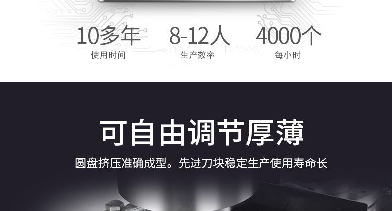 ◆采用圓盤擠壓搓圓技術(shù),結(jié)合面點(diǎn)工藝要求,使得制品外形美觀,大小均勻,表面光亮細(xì)膩;