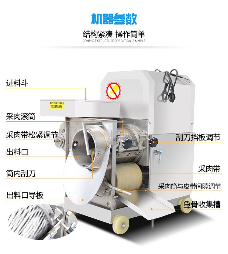 名稱不銹鋼魚肉采肉機 電源 功率 產量 尺寸 重量 規格 其他